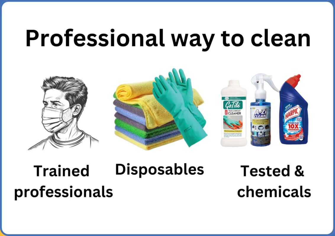 - Removing Bathroom toiletries and objects before cleaning, then replacing them afterwards